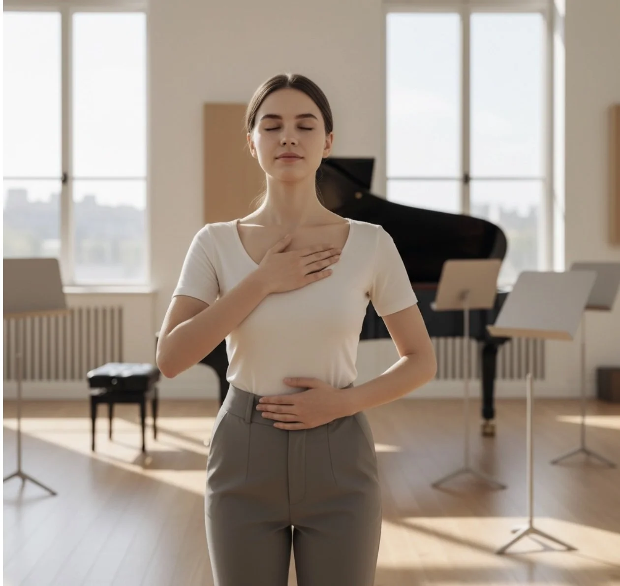 Here's the foundation everything else builds on – proper breathing. If you're breathing from your chest and shoulders (like most people do), you're leaving serious vocal power on the table.